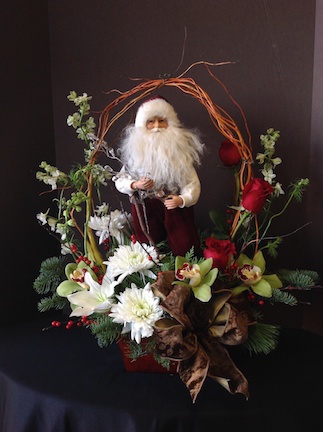 There are a variety of different options with Christmas flowers. Some arrangements may be done up with a Santa head, or a Santa ornament, as part of the decorations. Some may utilize a Santa container.